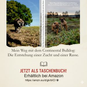 In diesem Taschenbuch „Mein Weg mit dem Continental Bulldog: Die Entstehung einer Zucht und einer Rasse“ nehme ich Sie mit auf eine spannende Reise. Ich berichte von meinen Anfängen, den Herausforderungen, aber auch den großen Erfolgen auf dem Weg zur Etablierung dieser wunderbaren Hunderasse. Erfahren Sie alles über die Zucht, die Gesundheitsentwicklung und das einzigartige Wesen des Contis. Tauchen Sie ein in die Geschichte des Continental Bulldogs!
